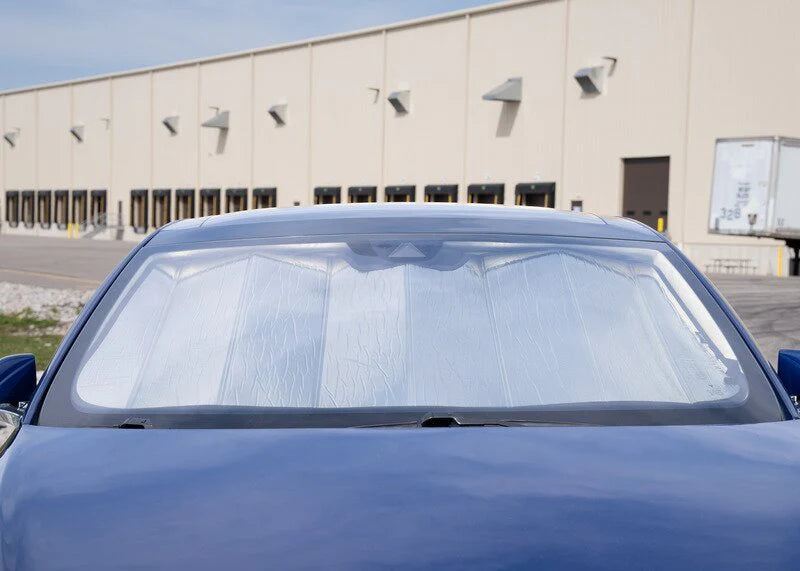 Crafted with multi-layer, heat-resistant, and reflective materials, this sunshade effectively limits the amount of sunlight and thermal energy entering through the expansive front windshield. It helps protect your dashboard, touchscreen, steering wheel, upholstery, and interior trim from sun damage, fading, and excessive heat exposure.