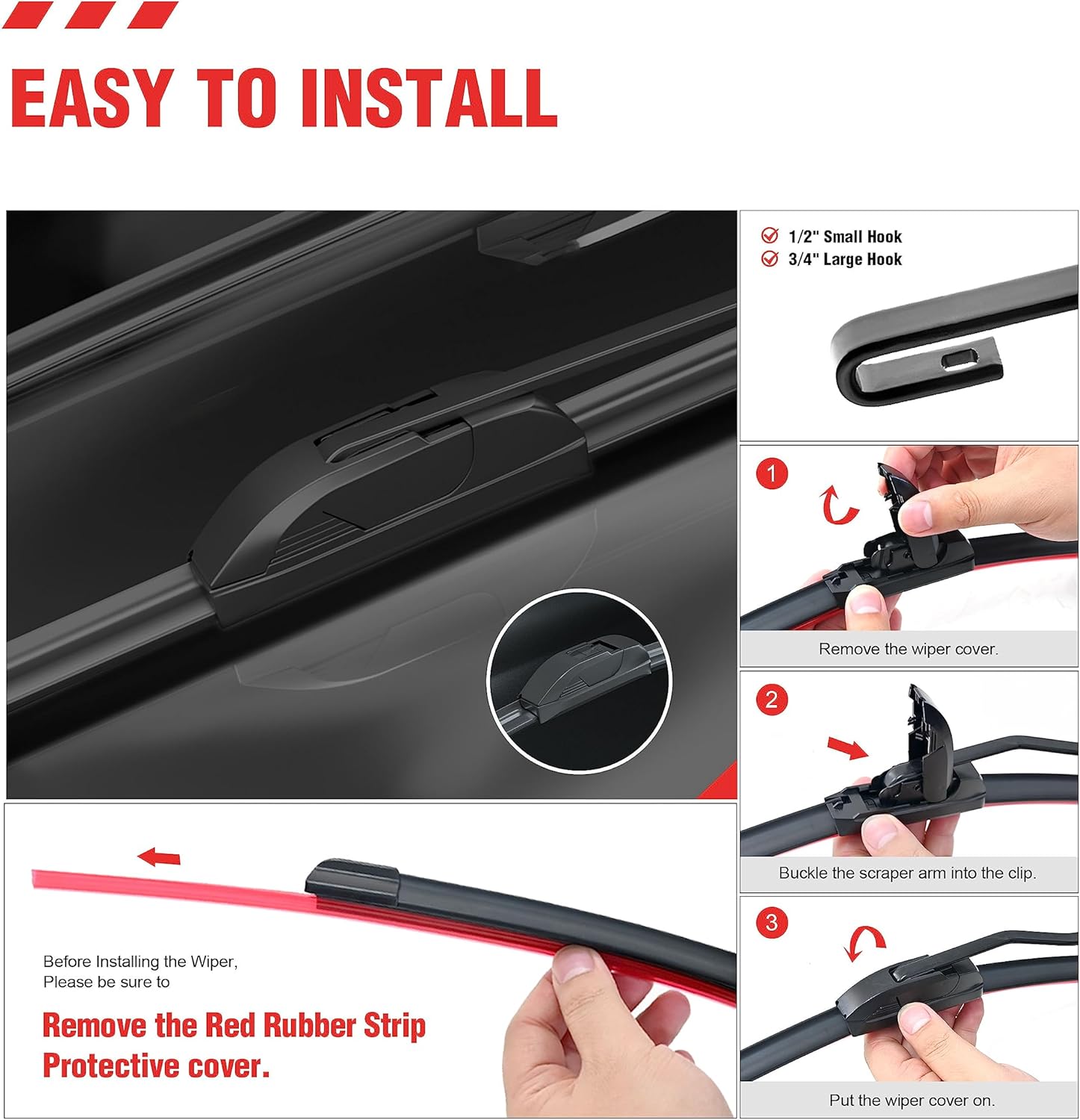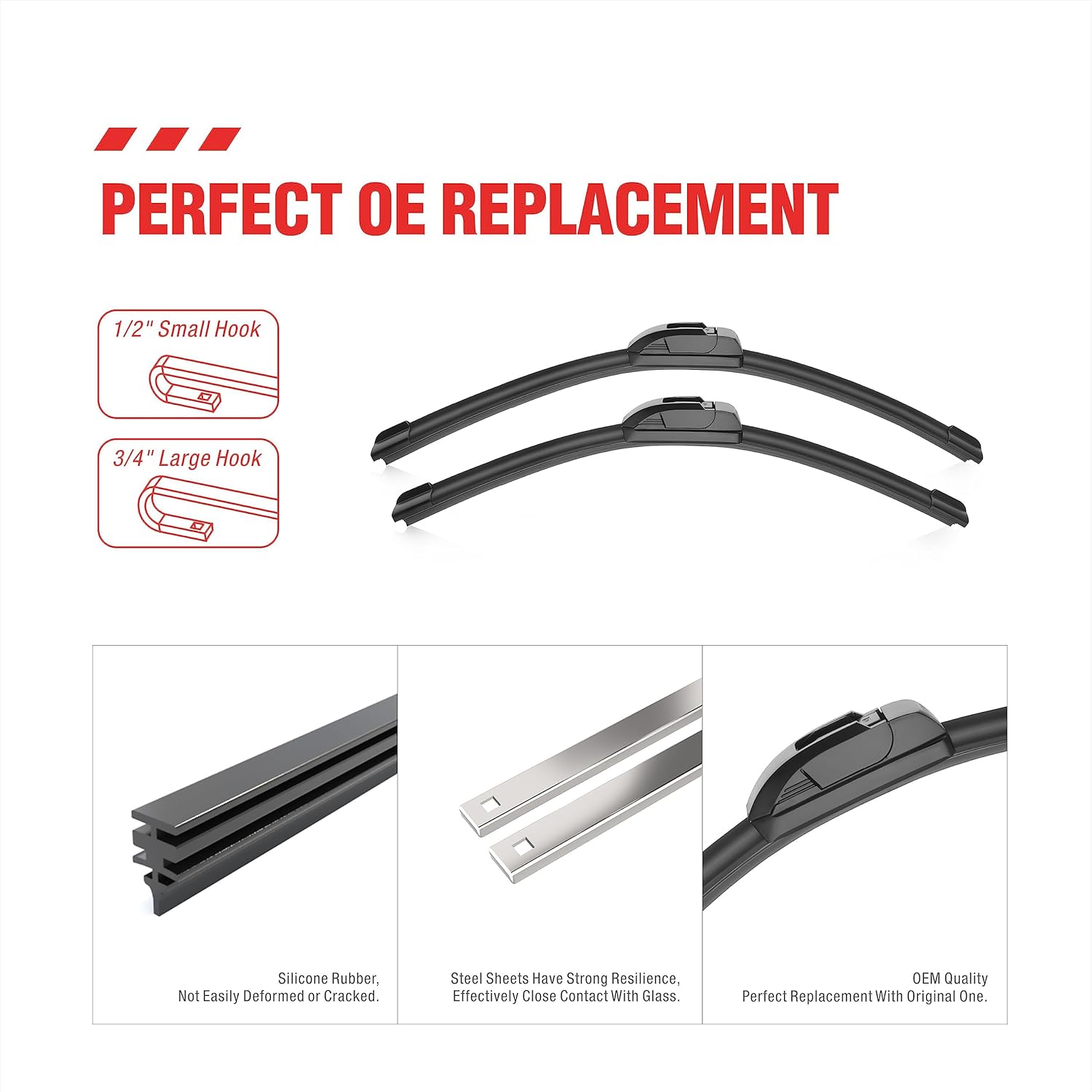 - Long Life and Warranty: Each wiper blade is tested for over 1.5 million wipes, equating to approximately one year of use. The set comes with a 12-month warranty and can be returned within 200 days for any reason.