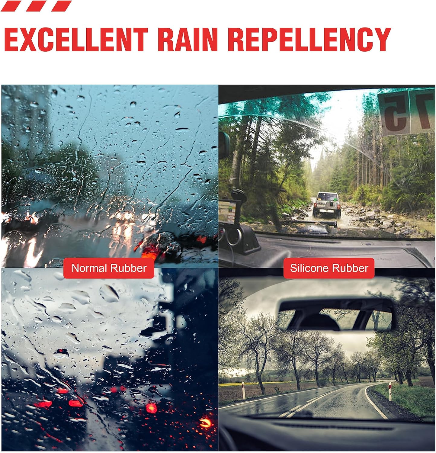 - All-Weather Performance: Made from high-quality silicone, these wiper blades resist extreme heat and cold, ensuring smooth and streak-free wiping action in rain, snow, and high temperatures.