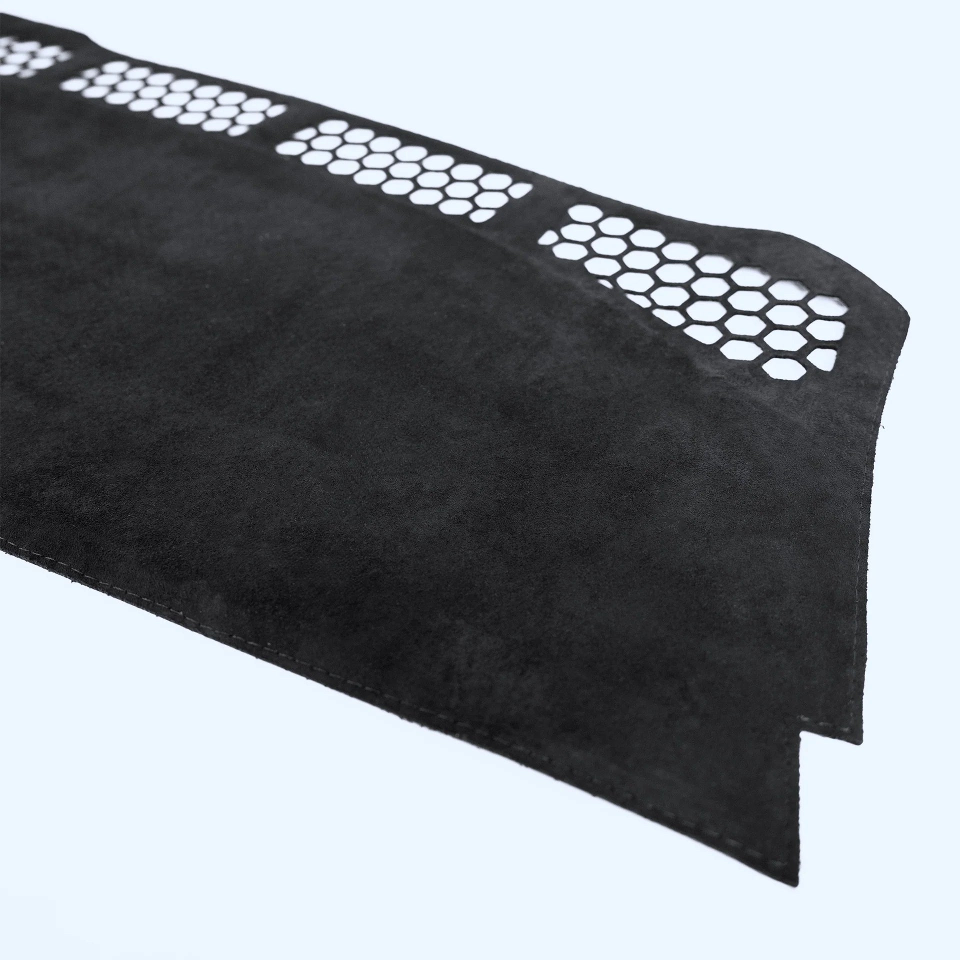 Unlike partial covers, this full-length design extends from the windshield edge to the top of the dashboard, offering enhanced protection against sunlight, glare, and daily wear. The precision-cut hexagon ventilation area ensures uninterrupted airflow from the defog vents, maintaining full functionality in all weather conditions.