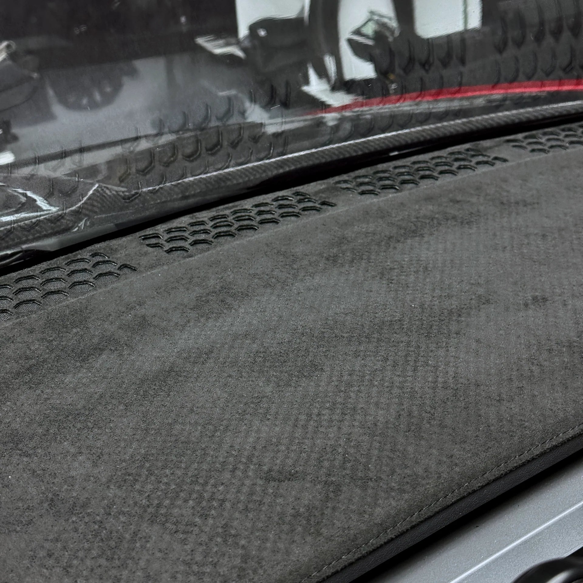 Perfect for owners seeking a clean factory look with added comfort and protection, this Alcantara dashboard cover seamlessly elevates the Tesla interior experience.