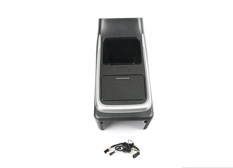 Crafted from durable, high-quality materials and finished with a carbon fiber–style surface, it complements the minimalist interior design language of the Tesla Model Y while providing practical everyday storage.