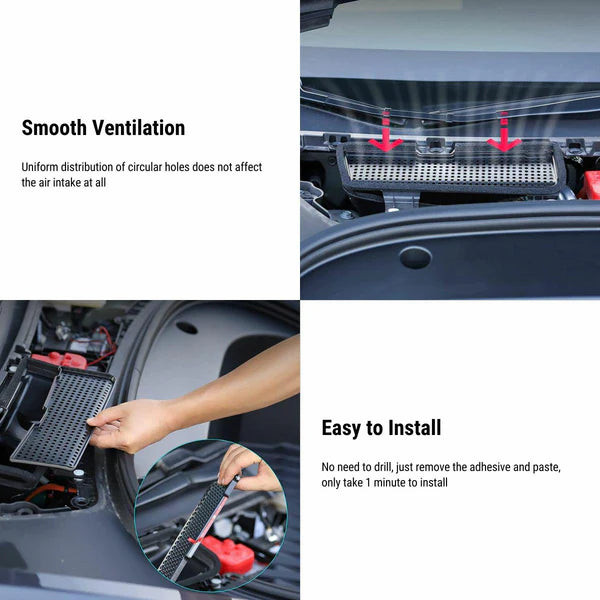 Manufactured from durable, odorless ABS material with an added bamboo-charcoal layer for enhanced filtration, this cover delivers superior airflow protection without affecting ventilation performance. It installs easily without tools, offering an instant upgrade to your Model 3’s cabin air quality and long-term HVAC protection.