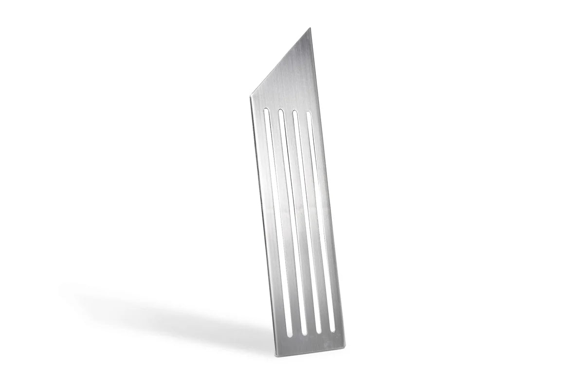 Manufactured from precision-formed sheet metal with a satin brushed finish, the dead pedal cover installs directly over the factory rubber ribs. Custom-machined slots allow the OEM anti-slip strips to pass through, ensuring secure footing without altering driving feel. The curved profile is shaped to match the factory foot rest contour, delivering a clean, OEM-inspired appearance in the driver footwell.