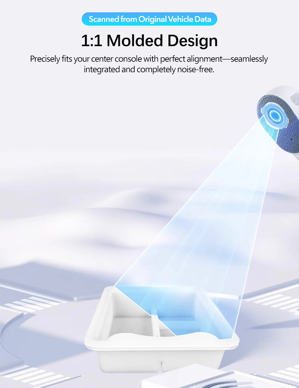 Engineered using original vehicle scan data for a perfect OEM-level fit. The storage tray seats securely inside the central console without rattling, ensuring a quiet, well-organized driving experience.