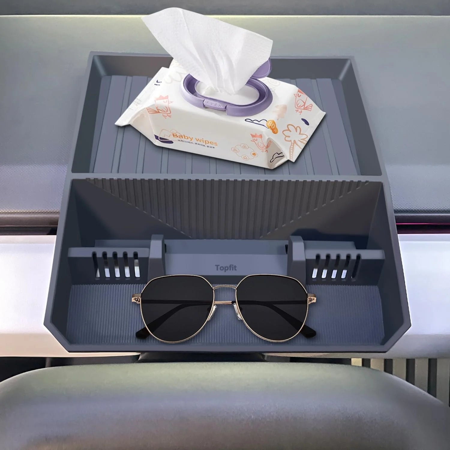 Put the unused space behind the Cybertruck’s central screen to work. The organizer offers convenient extra storage for sunglasses, keys, parking cards, charging cables, or other small essentials.