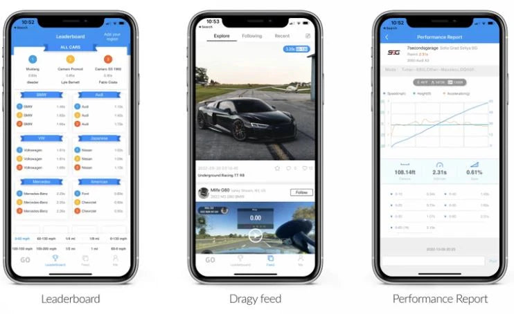 Precise Performance Tracking: Accurately record 0-60 mph, 1/4 mile, 1/8 mile, and top speed.