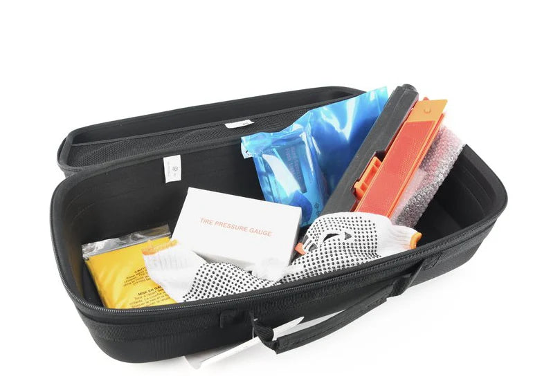 Housed in a durable, easy-to-carry storage case, this EV emergency kit includes essential safety and convenience items for common roadside scenarios. The carry case also features extra storage space, allowing you to add personal items such as a portable charging cable or first aid supplies (not included), making it a flexible solution for real-world EV ownership.