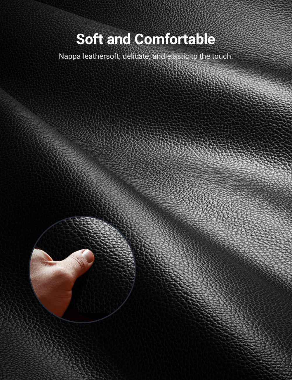 Crafted from high-quality Nappa leather, the material is soft, elastic, and breathable, providing a comfortable seating experience for daily driving and long trips while maintaining durability.