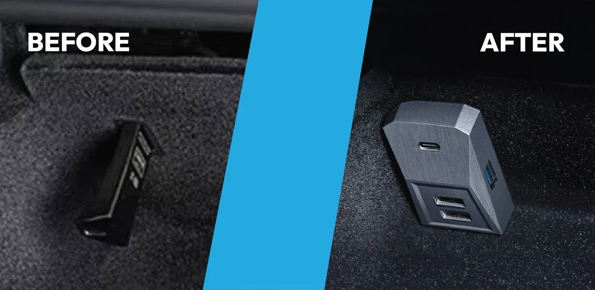 As Tesla removed data functionality from the center console starting in late 2021, this Glove Box Cyber-HUB USB Adapter restores both data transfer and charging access, making it an essential accessory for Tesla owners.