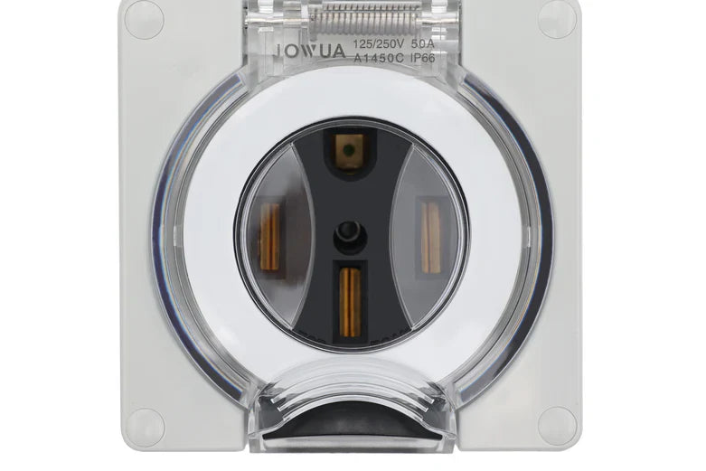 The Jowua NEMA 14-50 Weatherproof Power Outlet Box is engineered for high-demand electrical applications, delivering a maximum output of up to 12,000W. Designed to securely house a NEMA 14-50R receptacle, this heavy-duty outlet box is ideal for EV charging stations, RV hookups, and other 240V / 50A power needs, whether installed indoors or outdoors.