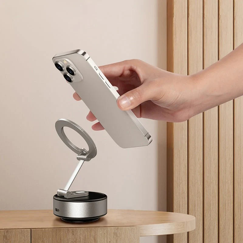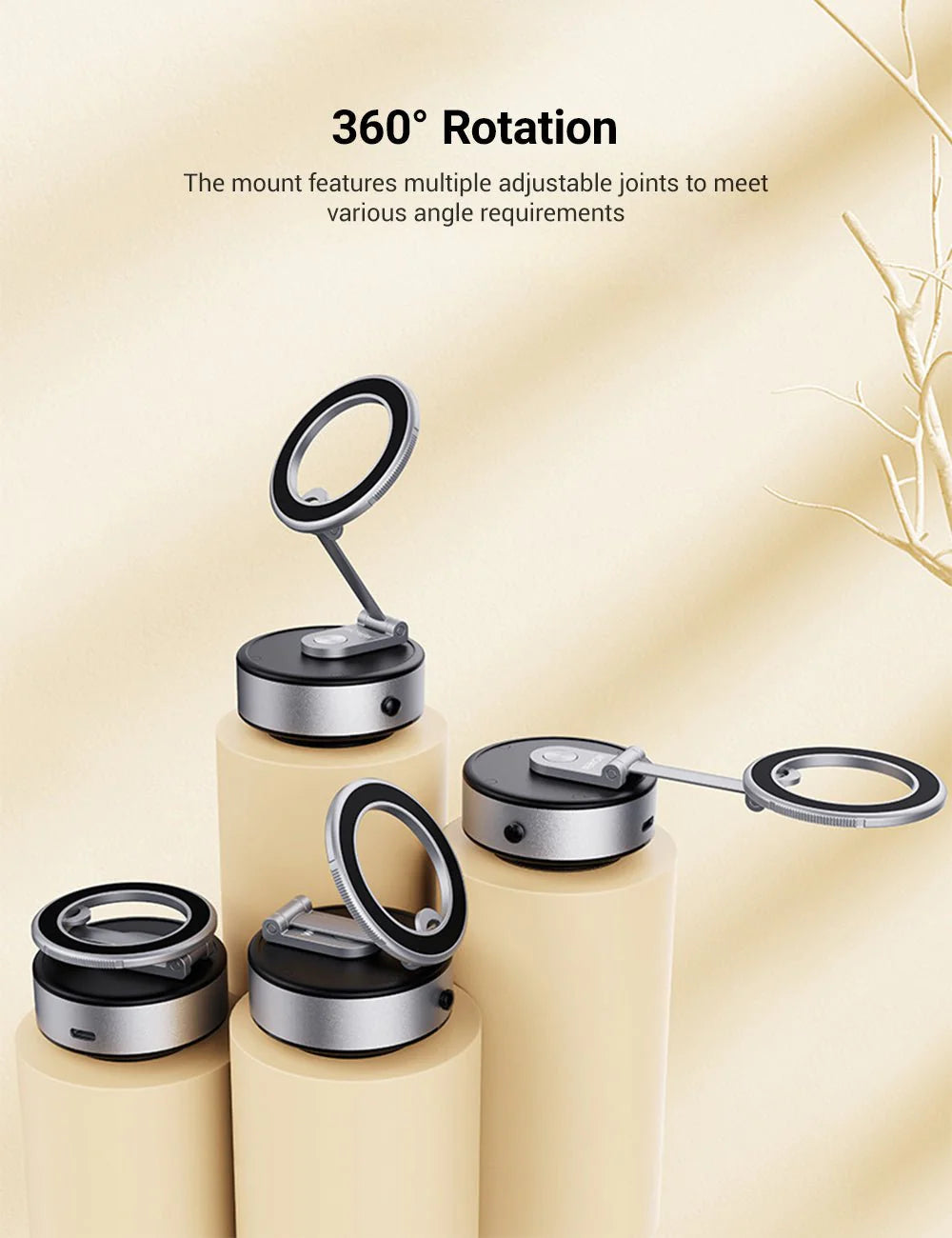 The MagSafe Vacuum Magnetic Phone Mount is specially designed for Tesla Model 3, Model Y, Model S, Model X, and Cybertruck owners who want a stable, compact, and effortless phone-mounting solution. Featuring a powerful magnetic adsorption system and a vacuum-enhanced base, this mount delivers exceptional holding strength even on rough or uneven roads. Its lightweight and compact structure ensures it fits seamlessly into any Tesla interior without blocking the screen or taking up space.