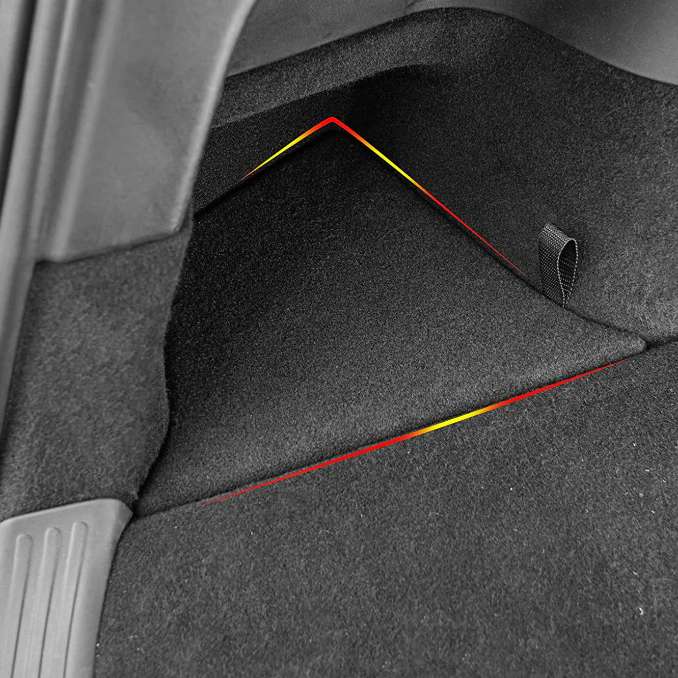 The lid’s flocked surface blends naturally with the Model Y’s original suede-style interior. It enhances grip while maintaining a refined look, elevating both style and practicality within the cargo area.