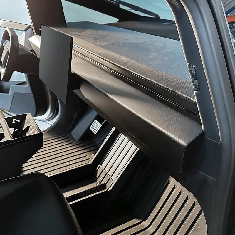 Modeled directly from the original Cybertruck dashboard contours, this custom-fit carbon fiber dash cover integrates seamlessly with factory panels. Once installed, it sits flush and secure, maintaining a clean OEM appearance without gaps or misalignment.