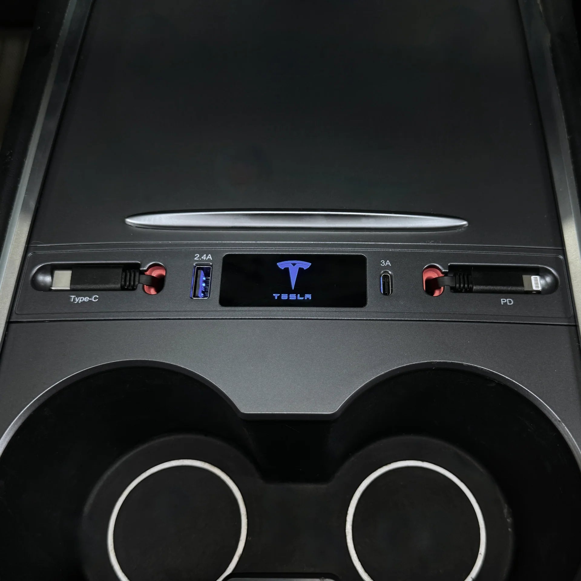 This center console hub seamlessly integrates into the factory console, matching the original OEM grey color for a clean, factory-installed look. Unlike older designs, this upgraded hub utilizes both internal USB-C ports inside the console to deliver stable fast charging up to 27W, while keeping your cables organized with dual retractable charging cords.