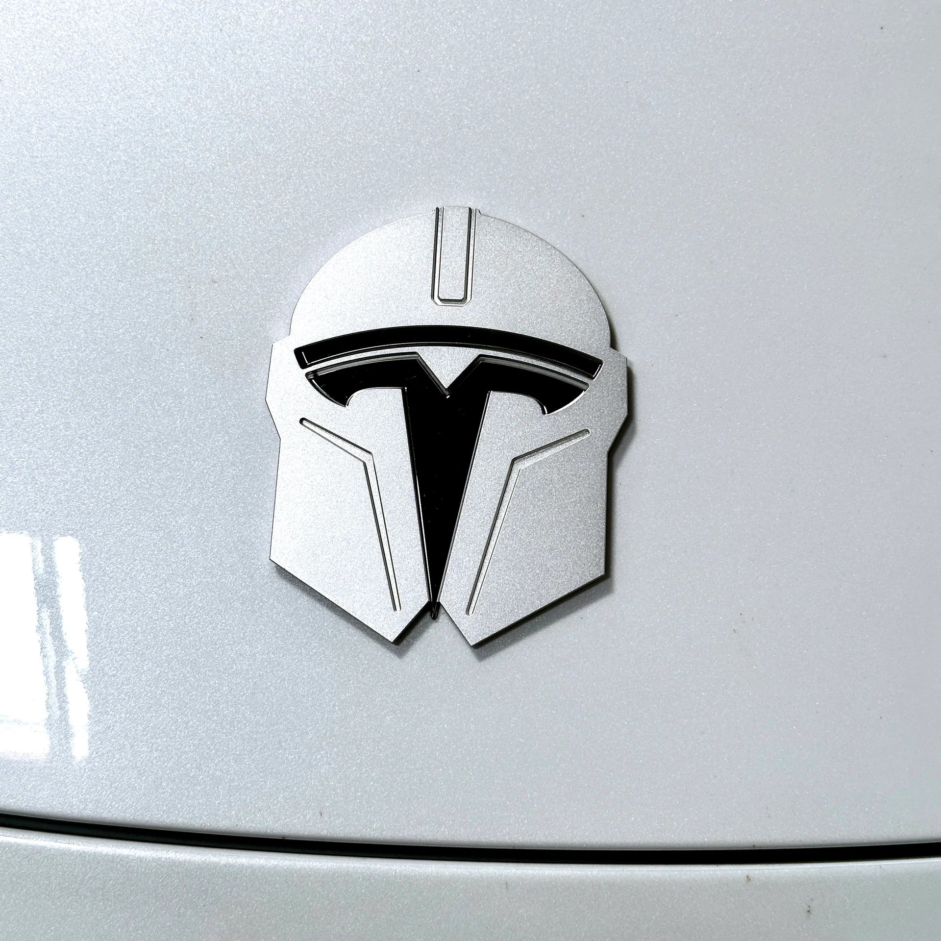 The Model 3 & Model Y Mandalorian T Logo Hood Overlay Emblem is inspired by the iconic Mandalorian helmet design, giving your Tesla a bold, sci-fi aesthetic reminiscent of Beskar steel. Designed for Star Wars fans and Tesla enthusiasts alike, this emblem installs cleanly on your front hood and instantly elevates your vehicle’s appearance.