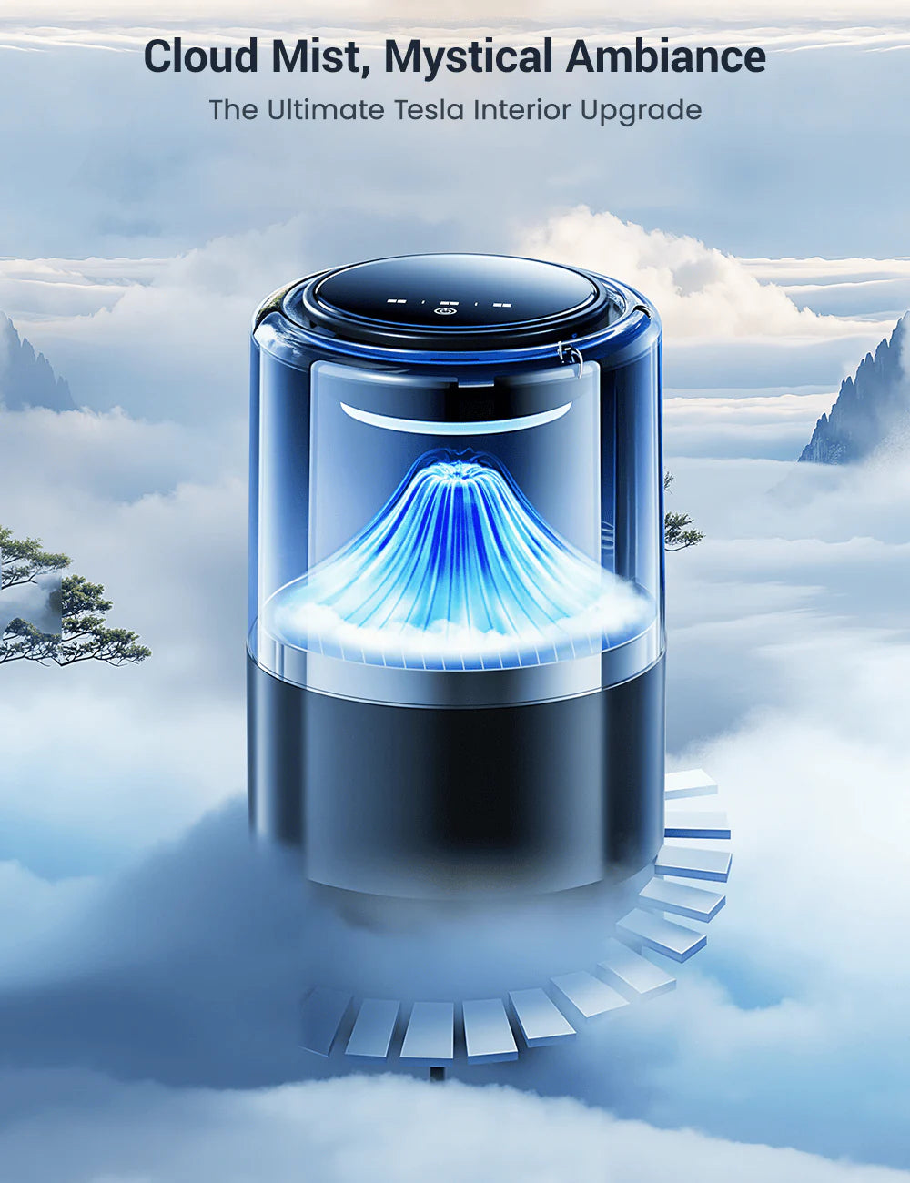Transform every drive with the Cloud Mist Intelligent Car Diffuser, engineered specifically for Tesla Model 3, Model Y, Model S, and Model X. This premium in-car diffuser combines ultra-fine aromatherapy mist, five-color ambient lighting, and smart automatic operation to elevate comfort, freshness, and driving atmosphere.