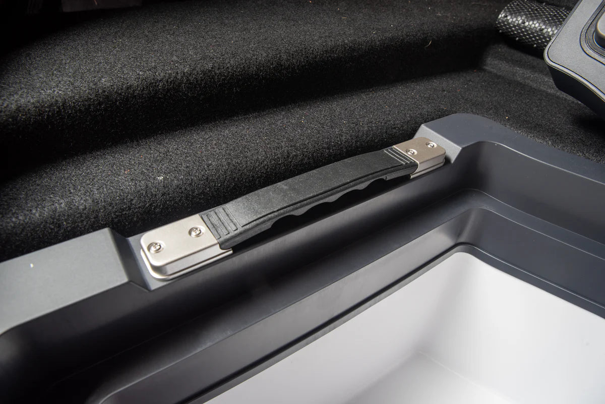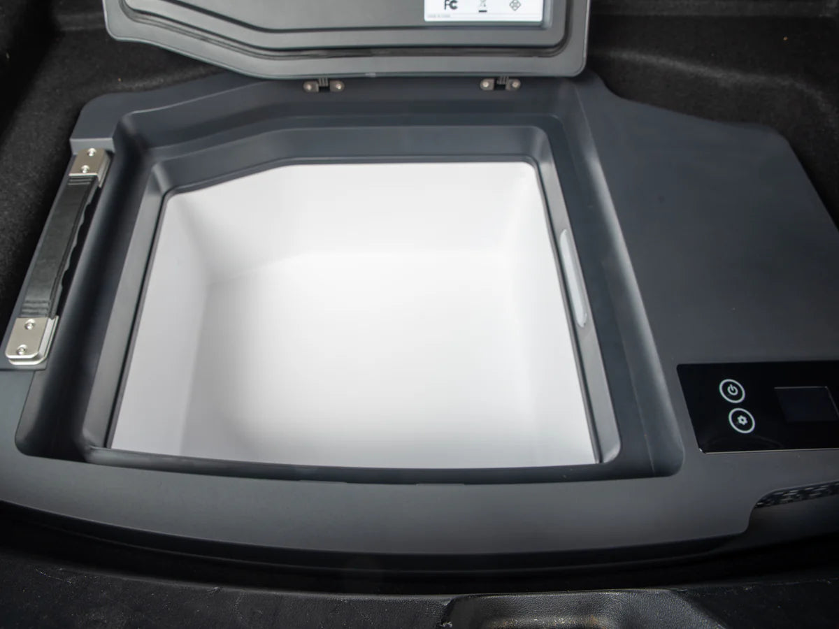 Custom-fit trunk well design keeps the fridge discreet and secure