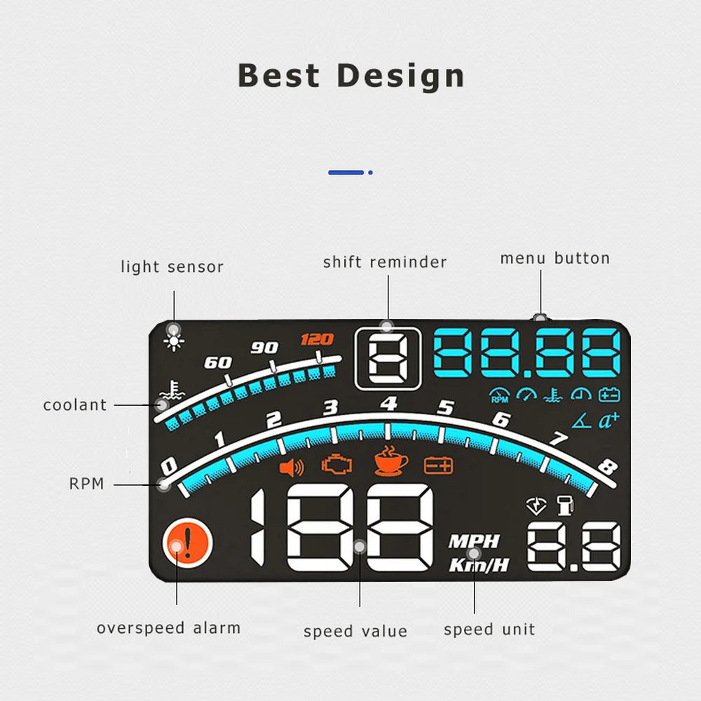 It displays driving data on the front windshield such as speed,RPM,water temperature,voltage single mileage etc. HUD avoids the danger of drivers looking down at the dashboard. It ensures the safety of drivers because of watching the data on the car front window glass, and helps drivers to keep the best state on the way. A variety of operating interface modes and colors can be switched freely, It will bring more fun and Technological sense to you.