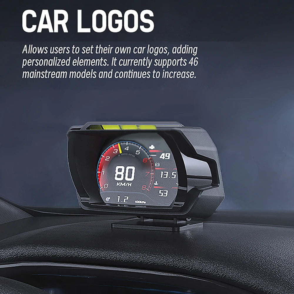 Vjoycar V80 2024 Newest Dashboard Head Up Display OBD2 HUD Total Mileage Car Logo Turbo Boost Security Alarm Water&Oil Temp. RPM