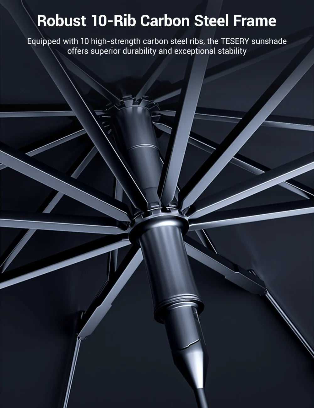Hot summer sun can quickly turn your Tesla into an oven. The Windshield Sun Shade Umbrella is precisely engineered for Tesla Model 3, Model Y, Model S, and Model X, helping reduce interior temperatures and protect your cabin from sun damage. With a convenient umbrella-style design, it installs in seconds and stores compactly when not in use—no tools, no hassle.
