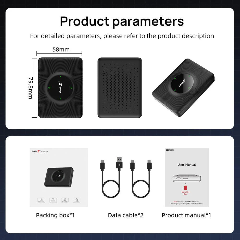 Upgrade your Tesla driving experience with this Wireless Apple CarPlay & Android Auto Adapter, designed specifically for Tesla Model 3, Model Y, Model S, Model X, and Cybertruck.